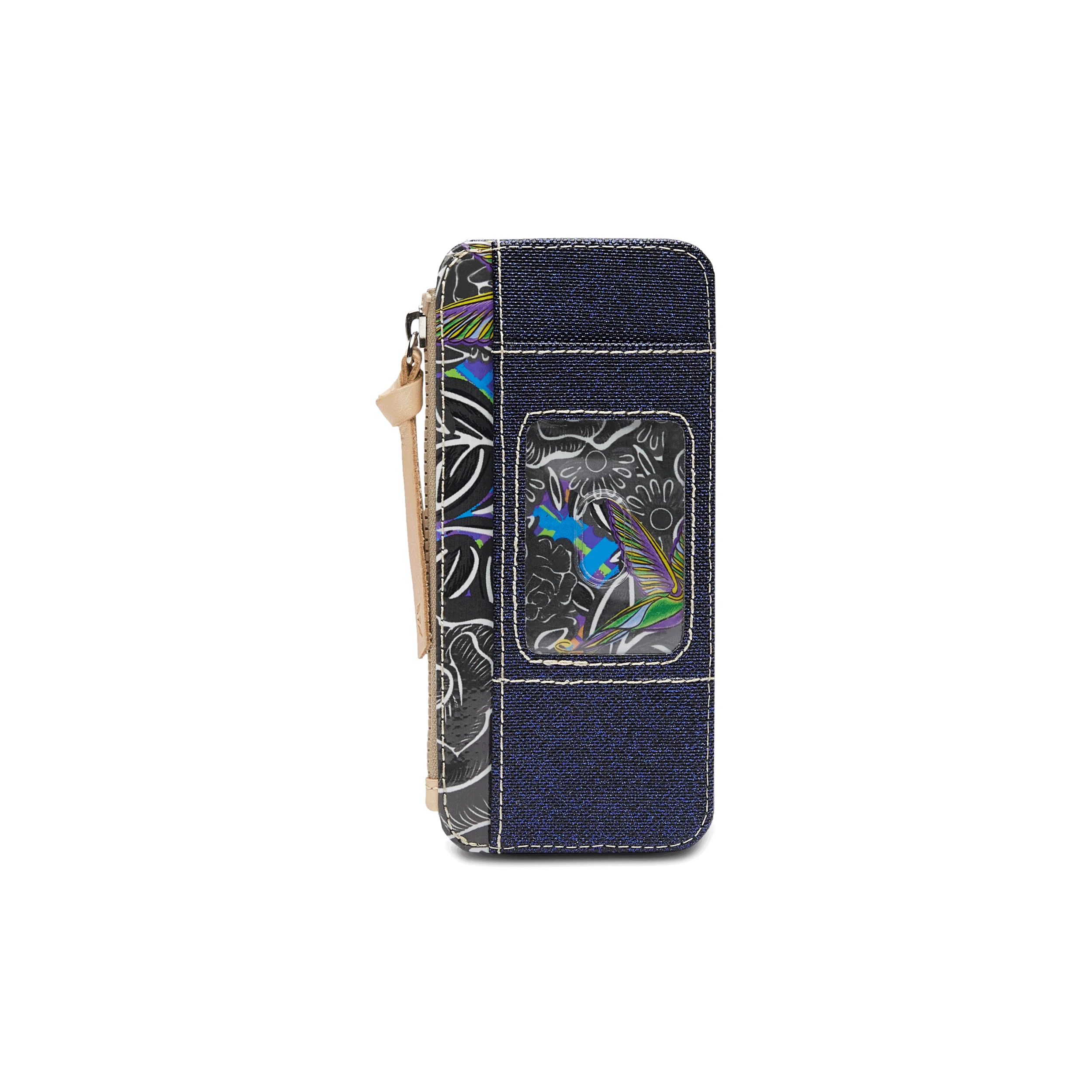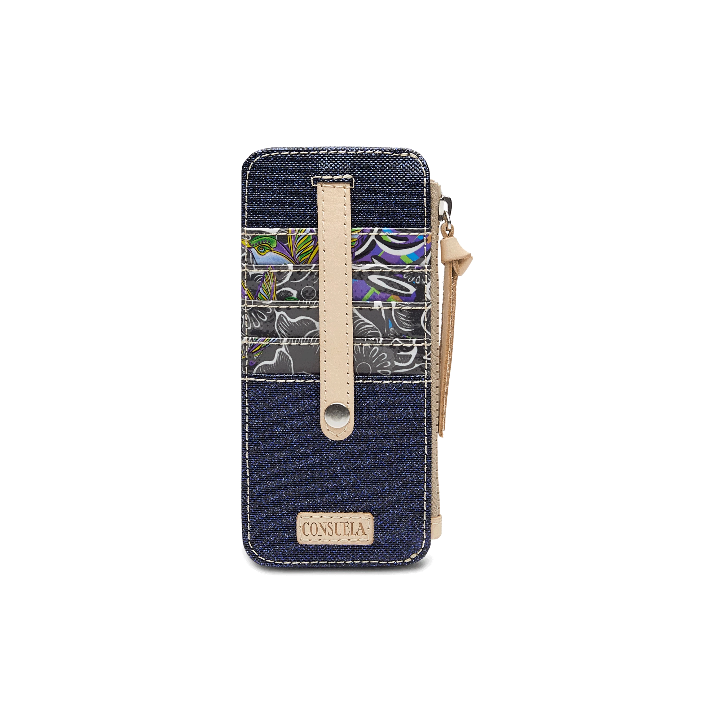 Perfect for a night out or for a day on-the- go, these Card Organizers makes it easy to access your cards, ID and quick cash. A mix of color and print, this card organizer features natural leather trim.