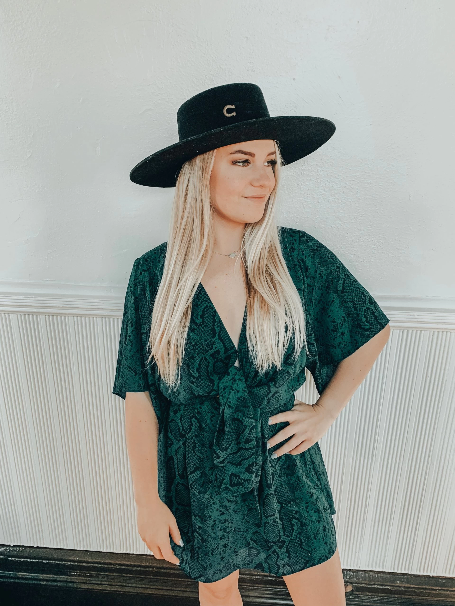 Charlie1 Horse High Desert Hat in black. Flat brimmed with hat band. Â