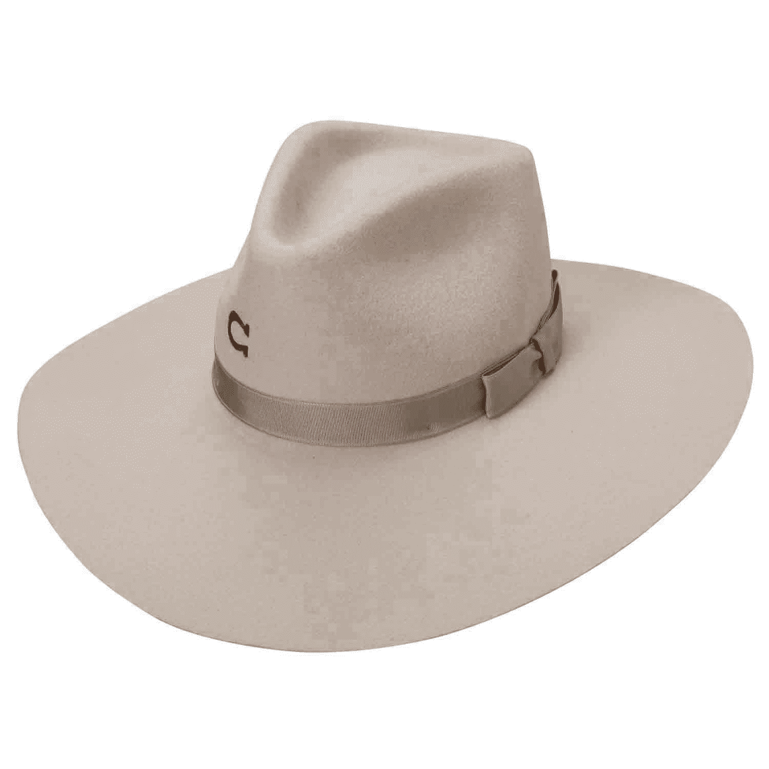 The Highway felt hat from the Charlie 1 Horse Wanted Collection features a floppy, wide brim and a classic pinch front crown. The matching ribbon hat band is finished with a bow and logo hat pin.