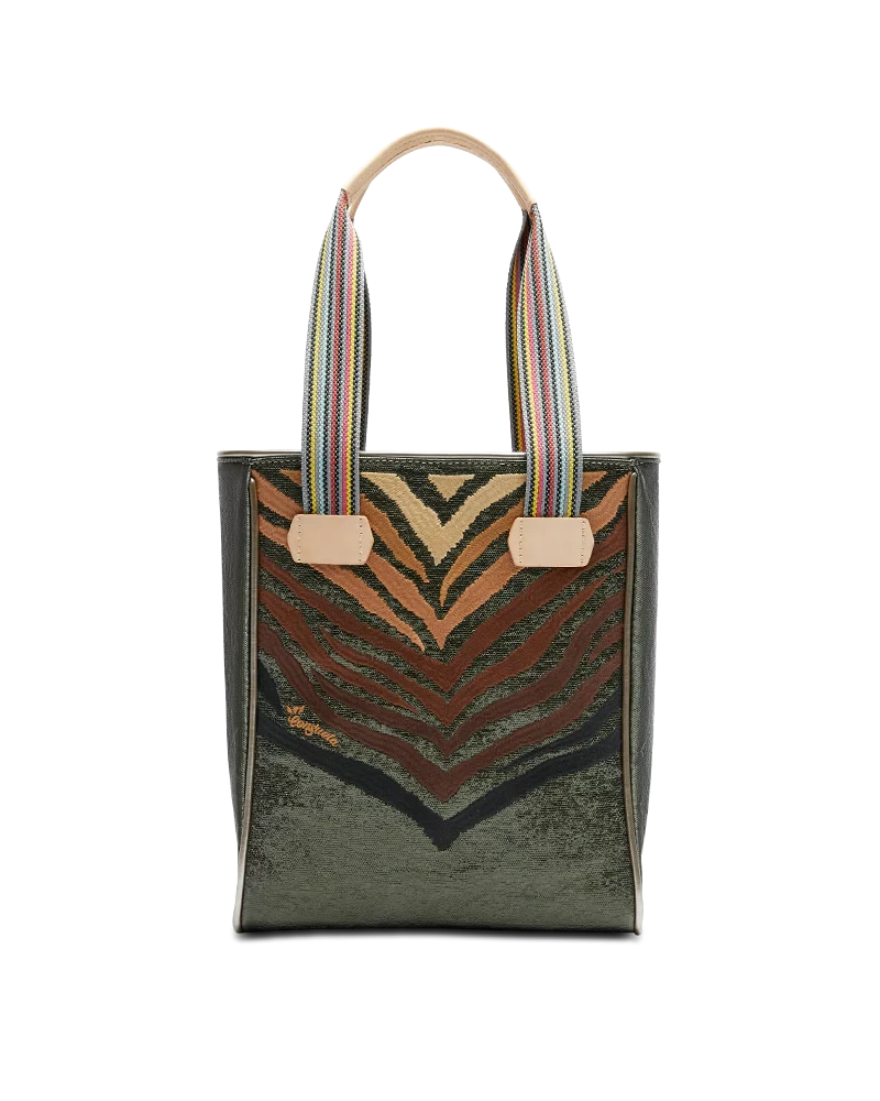 A new member to the Classic Tote family- meet the little sister, Chica! This multi-functional tote is trimmed in natural leather, created to hold its shape, and makes life on-the-go easy with inside pockets- perfect for carrying your essentials.