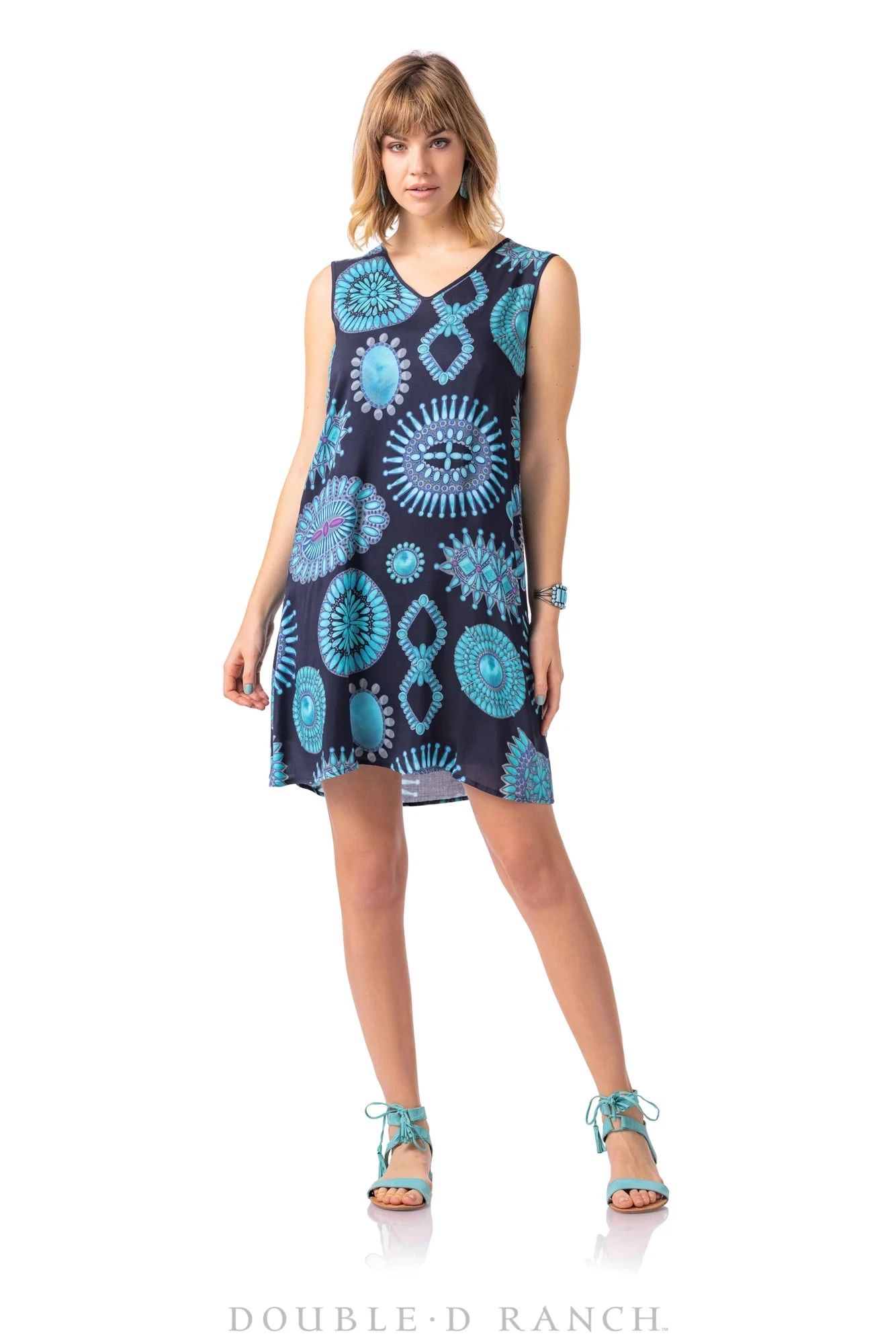 We mean it when we say we absolutely cannot get enough of Southwestern jewelry, and we worked it into a whole new way to wear. The Jewelry Junket Dress is a sleeveless A-line dress with a shallow, wide V-neck. The custom DDR print features scaled up clusters in traditional turquoise with pops of purple spiny oyster. Throw it on with your favorite boots and you’re ready to strut your way through summer with southwestern style!