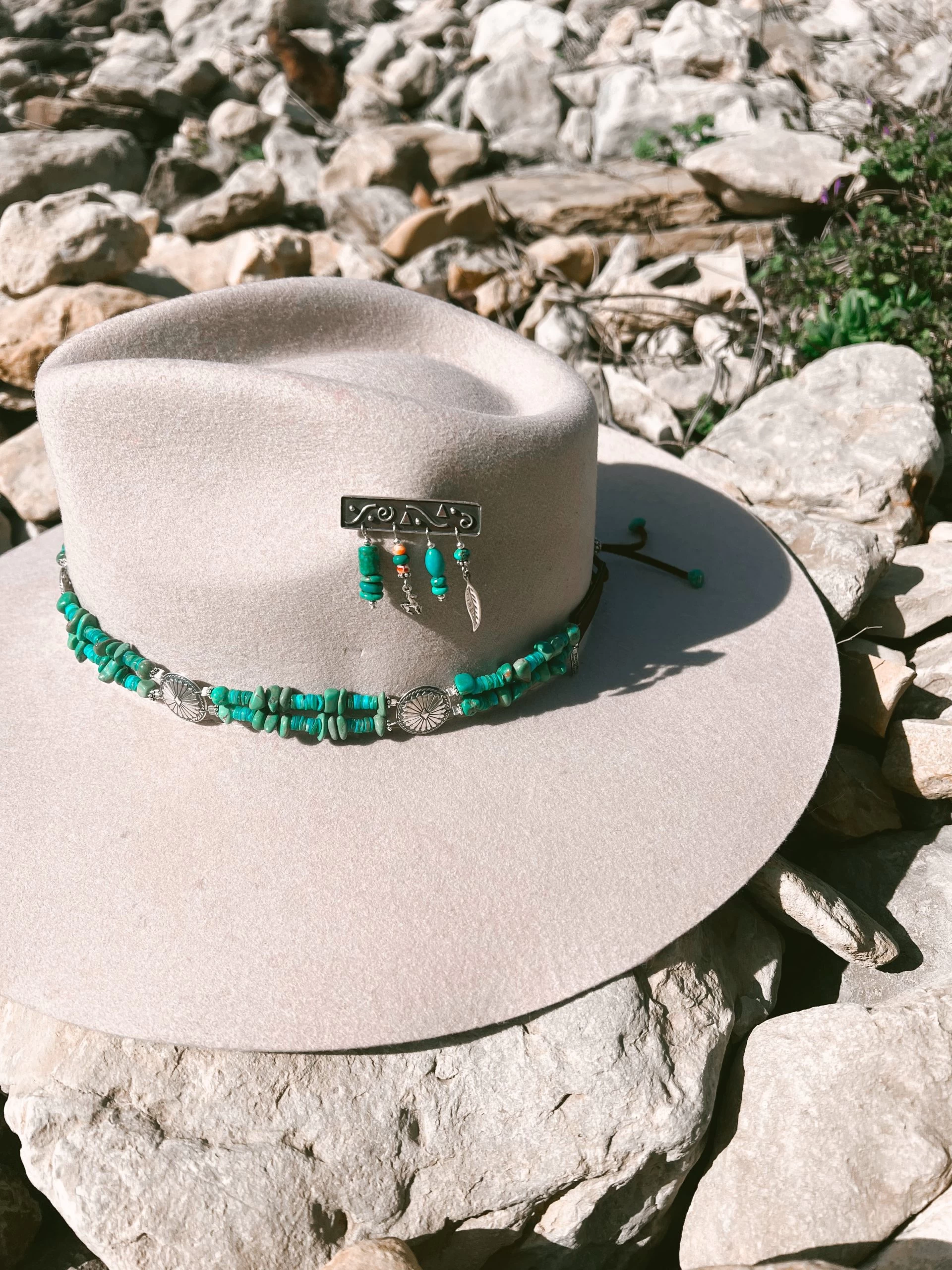 Sterling silver hat pin with turquoise and spiny hand beaded charms. Feather and horse charm. Style this on your favorite hat or throw her on a scarf or jacket!