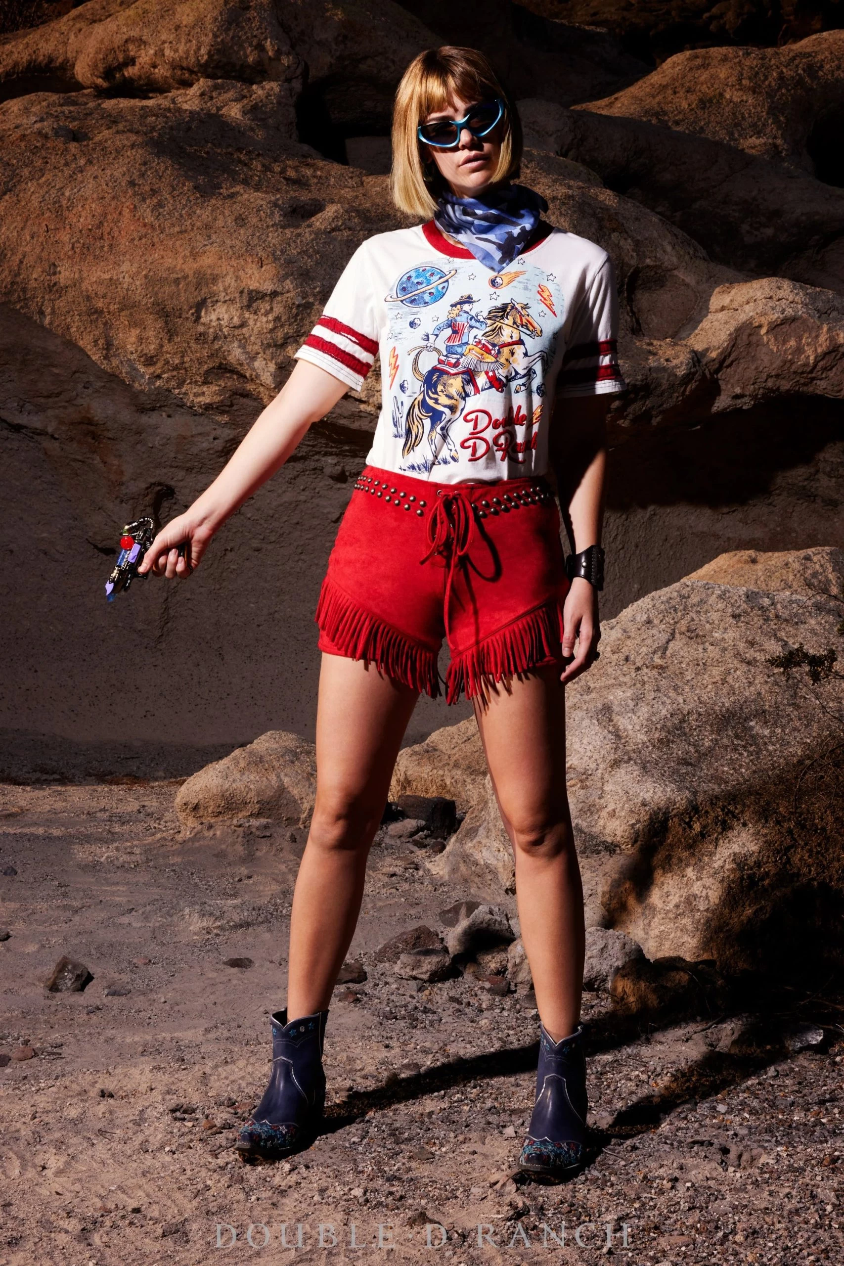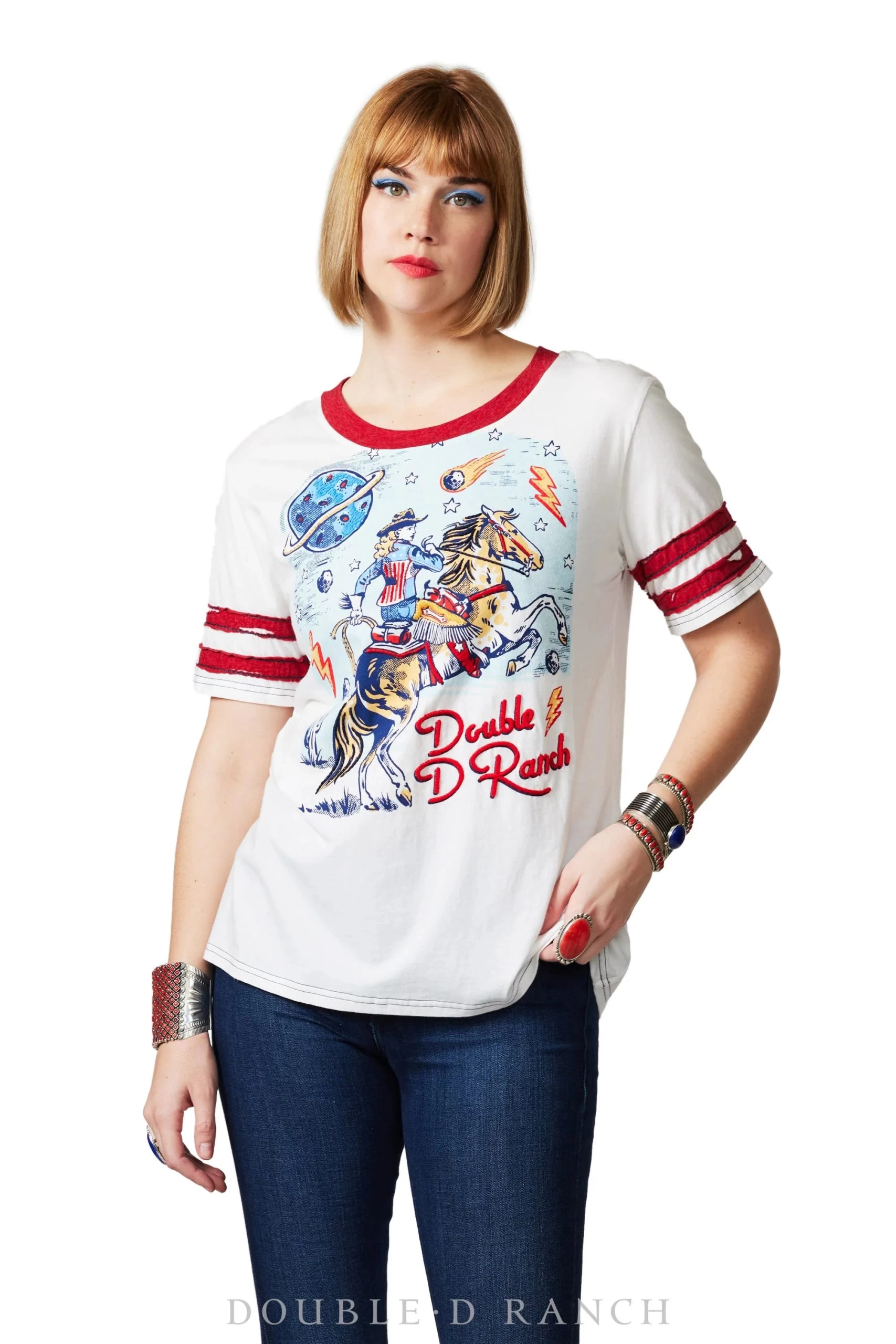 This galactic graphic tee is serving up sass with this spirited equine in outer space. It’s embellished with embroidery and accented with a contrasting collar and retro-ringed sleeves. An all-around out-of-this-world addition to your everyday outfit!