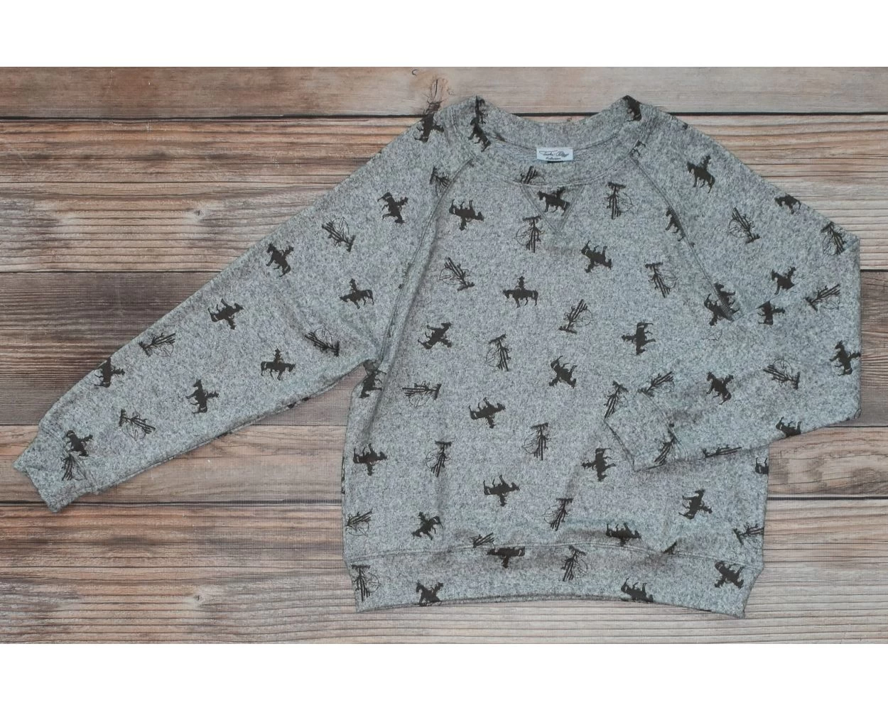 - Long Sleeve Pullover with a Horse and Cactus Print